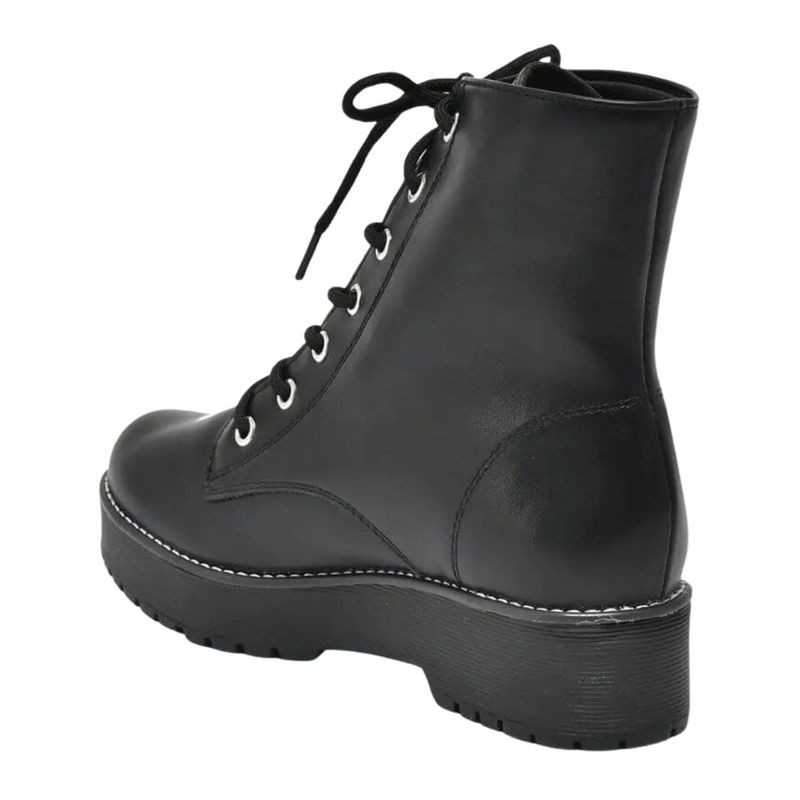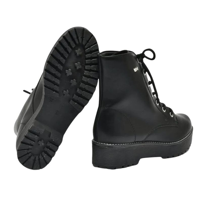 O sistema de amarração favorece melhor encaixe, tornando essa bota feminina coturno confortável para o dia a dia.