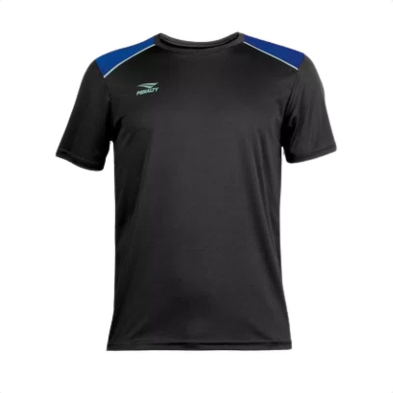 A Camisa Masculina Penalty Shoulder Manga Curta Preto/Azul é a opção ideal para quem busca desempenho, conforto e estilo dentro de campo.