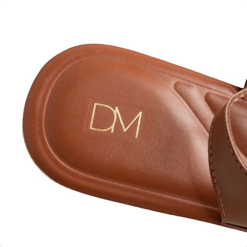 Minimal Caramelo DM tem design minimalista, tira única central e fechamento no