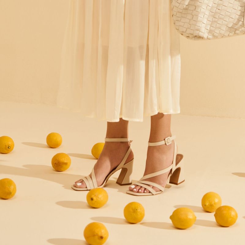 Com tiras cruzadas que valorizam o pé, a sandália é moderna e minimalista. A versão off-white traz leveza e frescor pra seus looks. Fica perfeita com linho, tons pastel ou aquele vestido floral romântico. Confortável e fashionista do jeitinho que a gente ama! Minimalista, fresh e versátil.