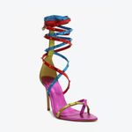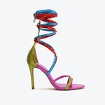 Uma sandália exclusiva, de linhas minimalistas e com todo o glamour dos studs nas tiras finas do cabedal. Sexy, ela tem fechamento de amarração e salto fino, e aparece nesse tom metalizado colorido perfeito para looks noite cheios de personalidade.