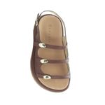 A Sandália Ramarim combina estilo, conforto e praticidade em um único modelo. Seu design moderno apresenta três tiras frontais com aplicações metalizadas em dourado, acrescentando sofisticação ao visual, enquanto a cor marrom neutra permite modificações versáteis com visuais diferentes. O ajuste lateral com cincola proporciona segurança e praticidade ao caminhar, e o trabalho solado emborrachado com textura garante estabilidade e personalidade. A palmilha em EVA macia segue a anatomia do pé, oferecendo conforto durante o uso prolongado. Ideal para passeios, compromissos do dia a dia e produções casuais, esta sandália papete é perfeita para quem busca leveza, elegante e bem-estar em cada passo.