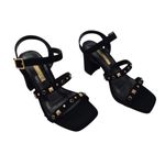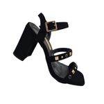 O cabedal, confeccionado com materiais de alta qualidade, apresenta tiras finas e delicadas que se cruzam harmoniosamente sobre o pé, proporcionando um toque sofisticado e moderno. O fechamento por fivela no tornozelo garante um ajuste perfeito, enquanto a palmilha macia proporciona uma sensação de bem-estar contínuo.