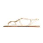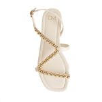 Rasteira DM AURORA combina o branco sofisticado com aplicações douradas que iluminam o visual. O design minimalista garante leveza, enquanto os detalhes preciosos trazem um toque glamouroso. Perfeita para o dia a dia ou momentos especiais da estação.