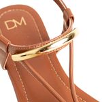 A Sandália Rasteira na cor Terracota. O modelo conta com tiras que envolvem o calcanhar, as laterais e o peito do pé, além de uma tira fina com efeito de nó que separa os dedos. Possui solado rasteiro confortável, bico quadrado e fechamento com fivela em metal dourado. Destaque para o detalhe metálico dourado aplicado sobre o peito do pé. Confortável e atemporal, vai te acompanhar em todos os momentos da estação.