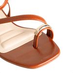 Feita em tom terroso super versátil, essa rasteira é um clássico repaginado. As tiras finas cruzam o peito do pé com delicadeza e o fechamento em fivela garante segurança ao caminhar. Combina com produções naturais e looks leves de verão.