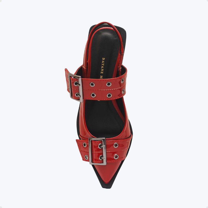 Os modelos da coleção "Elo de Corações" apresentam cores vibrantes e detalhes marcantes, como fivelas e acabamentos em verniz, que simbolizam as diferentes facetas do amor cada design refletindo a força e a beleza dessas conexões. O slingback vermelho ardente evoca paixão e desejo. Cada sapato foi cuidadosamente criado para ser não apenas um acessório, mas um elo de ligação entre os namorados, incentivando-os a expressar seu amor com confiança e estilo.