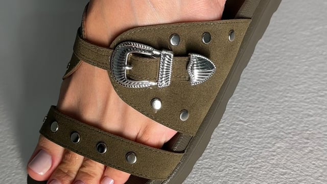 absoluto com estilo cool! A Papete DM em camurça tem sola tratorada e fivelas