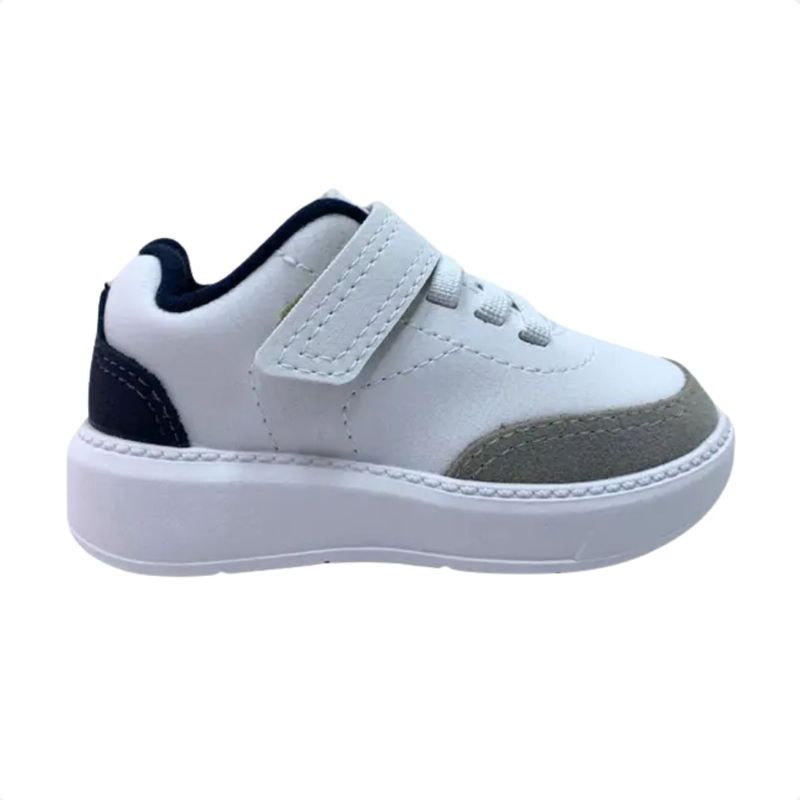 O Tênis Molekinho Casual Infantil Menino 2631.110.17063 é confeccionado em material sintético de boa qualidade, garantindo durabilidade e resistência. Este modelo apresenta um design estiloso com sobreposições contrastantes que adicionam um toque moderno ao calçado. O bico em camurça e as costuras aparentes conferem um visual robusto e sofisticado. O fechamento é prático e seguro, com cadarço elástico e tiras autocolantes frontal, facilitando o calce e ajuste. O forro têxtil é aconchegante, proporcionando conforto durante o uso. A palmilha macia e o solado em TR asseguram conforto e tração em diferentes superfícies.