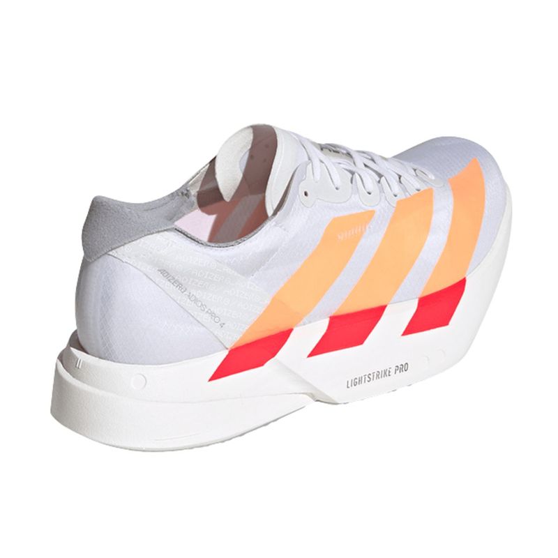 O Adizero Adios Pro 4 Branco apresenta visual esportivo e moderno, com identidade voltada para corrida de alta performance. Seu design reforça a proposta competitiva do modelo, mantendo acabamento limpo, funcional e alinhado ao uso em provas.